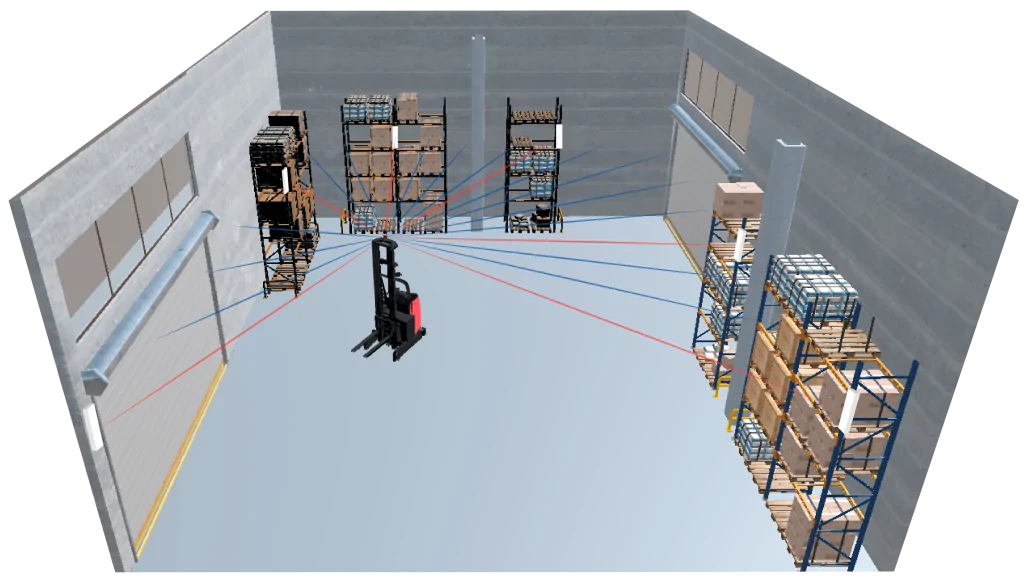 AGVs with laser navigation work via a triangulation algorithm with the help of reflectors that are placed strategically at certain locations. The AGVs are equipped with a laser that is constantly searching for a reflector and determines its position by receiving a reflection back from at least three reflectors at the same time. The installation process is time-consuming, requiring the reflectors to be placed in the environment, performing a survey of the reflectors, and programming the system. This navigation type allows using fleet control to manage multiple vehicles. The disadvantage is a long installation time and the complex process to change AGV paths, resulting in high overall system costs.