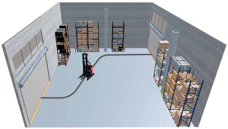 Analyzing current material flow routes is essential to incorporate AGVs in the most efficient way. Consider how busy the location is, how many vehicles will be driving at the same time, and how many people are walking at the location.